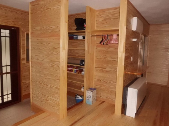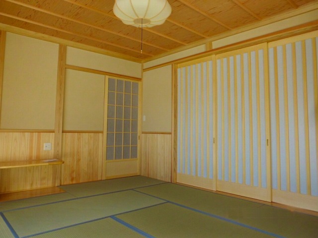 杉無垢板張り、和室:腰桧無垢羽目板・京壁